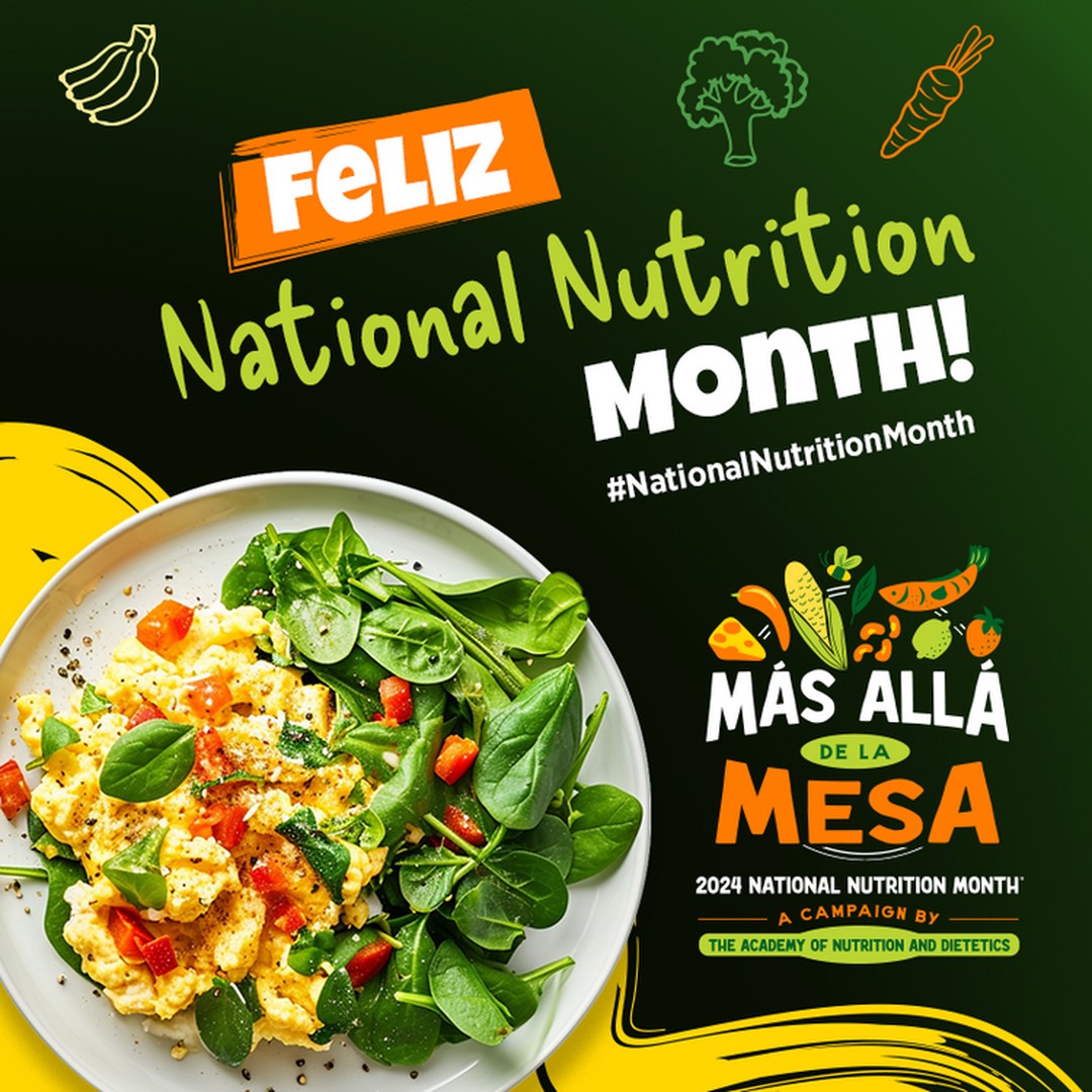 El tema de este año para el Mes Nacional de la Nutrición nos inspira a mirar más allá de la mesa cuando pensamos en nuestra salud y el medio ambiente. Las muchas decisiones alimentarias que tomamos a diario, incluyendo lo que vamos a comer y beber, pueden marcar una gran diferencia, tanto ahora como en el futuro.