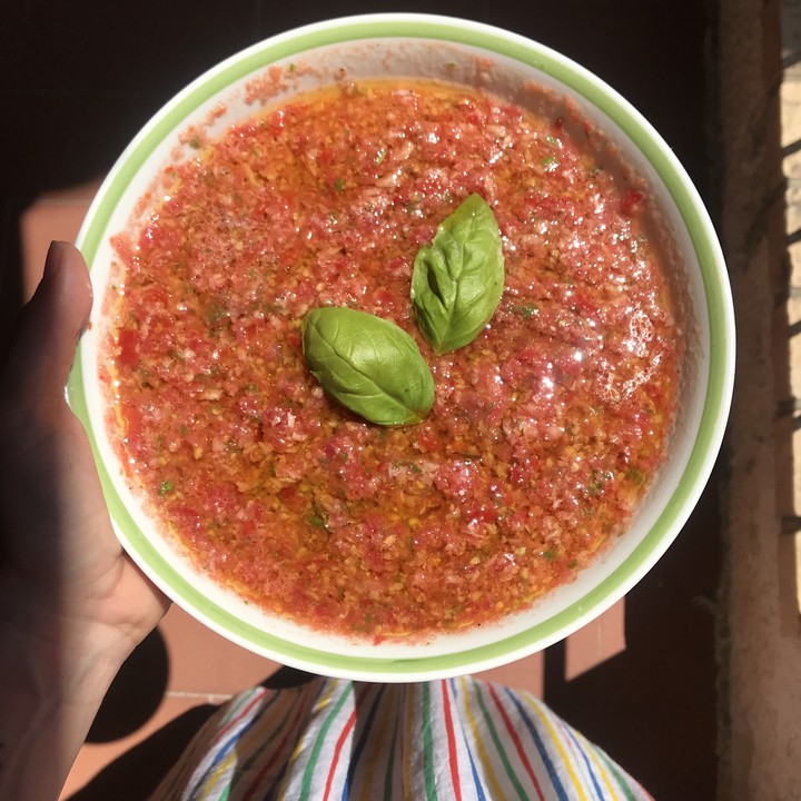 Aunque existen muchos tipos de pesto, este rojo se destaca por su sabor único. Se dice que su inspiración proviene del pesto genovés, cuando los barcos provenientes de Génova atracaban en el puerto de Trapani, dejando la tradición de su pesto. Los marineros de Trapani lo adaptaron, elaborándolo con tomates, almendras, albahaca y ajo.