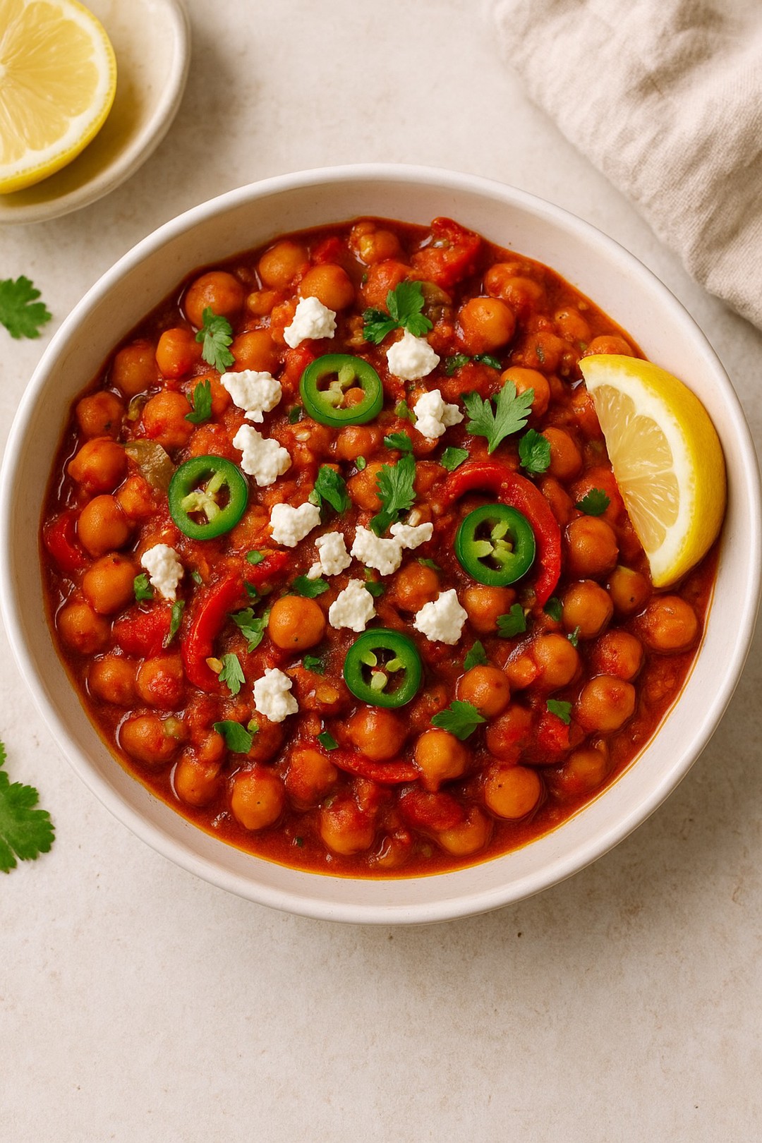 Estos garbanzos con jalapeños y queso feta son la combinación perfecta de proteína vegetal, frescura y un toque cremoso que hará que quieras repetir.